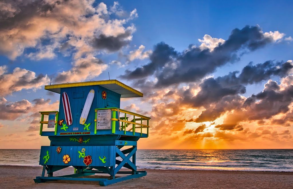 Miami Beach es una de las ciudades de las más de 20 que componen el condado de Miami Dade, en Florida. Con sus características casetas pintadas de alegres colores y sus impresionantes playas de arena blanca, es la imagen que todo el mundo tiene en la cabeza cuando piensa en Miami: sol, playa, relax y ocio. Está unida a la zona continental de Miami por medio de cinco carreteras elevadas y la vista desde las alturas no tiene desperdicio: