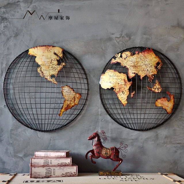 Decoración mapa del mundo de metal para exponer fotografías de Art Wall & Co.