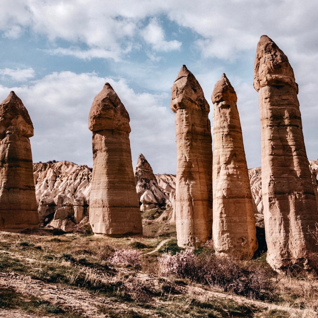 Llamado así por las formas “eróticas“ de sus formaciones rocosas, es uno de los paisajes mas conocidos de la Capadocia. Podéis visitarlo al amanecer porque es un lugar desde el que se pueden ver bien los globos, pasear por los senderos el valle y disfrutar de sus cafeterías o miradores para observar el paisaje desde las alturas. Podéis llegar a él caminando desde Göreme en un paseo de unos 5 kms/1h.
