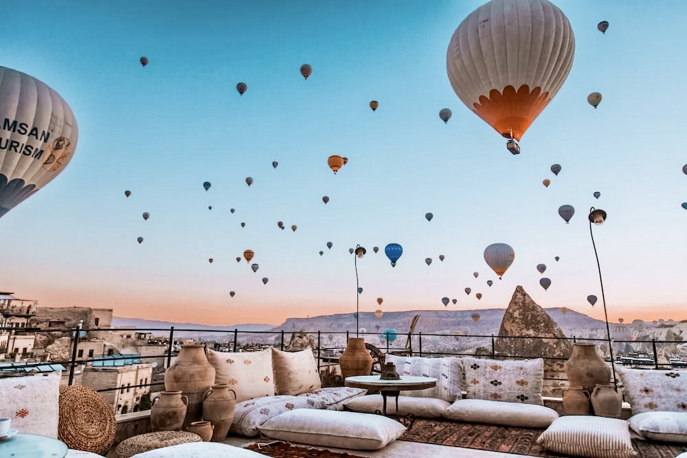 In Göreme, the perfect accommodations to see them are those with terraces overlooking the Sunrise Point or strategic points in the balloon flights, these are a few examples:
