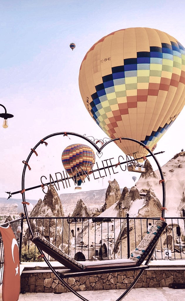 We stayed at Elite Cave Suites Hotel after considering (a lot!) many alternatives and especially because of its location. Although the hotel was basic, the ability to almost touch the balloons from the window of our room was unbeatable and after our stay we realized that our experience would not have been as memorable in any other accommodation. It is just a few steps away from the main road, right in front of one of the best viewpoints in the valley (Sunset Point) and on its terraces (one with a nice swing) the balloons would pass within inches of us in the mornings. The price per night varies depending on the season between 55€/110€ with breakfast and we absolutely recommend it.