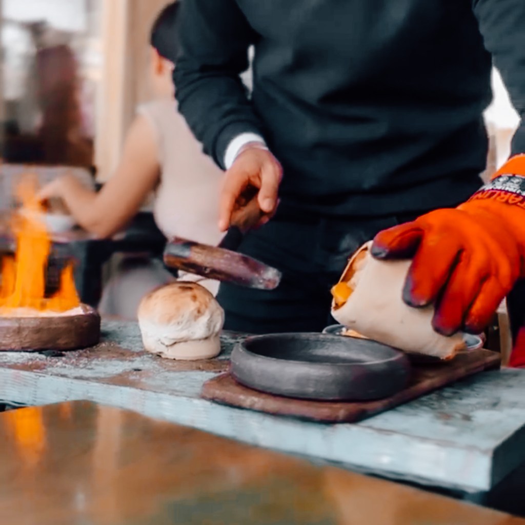 Cappadocia’s cuisine is based on mixtures of meat, vegetables and pulses cooked in clay pots, which give the dishes a distinctive flavour, as well as desserts and soups. Highlights include testi kebab (a Central Anatolian dish cooked in an earthenware jar with its own presentation ritual in which the jar is broken in front of the diner and the contents served on plates), meatballs, apricot stew, ağpağla dried beans, lentil soup or desserts such as çiğleme (a mixture of sugar, eggs, honey, butter, walnuts and hazelnuts), ceramic cheese or stuffed apricots.