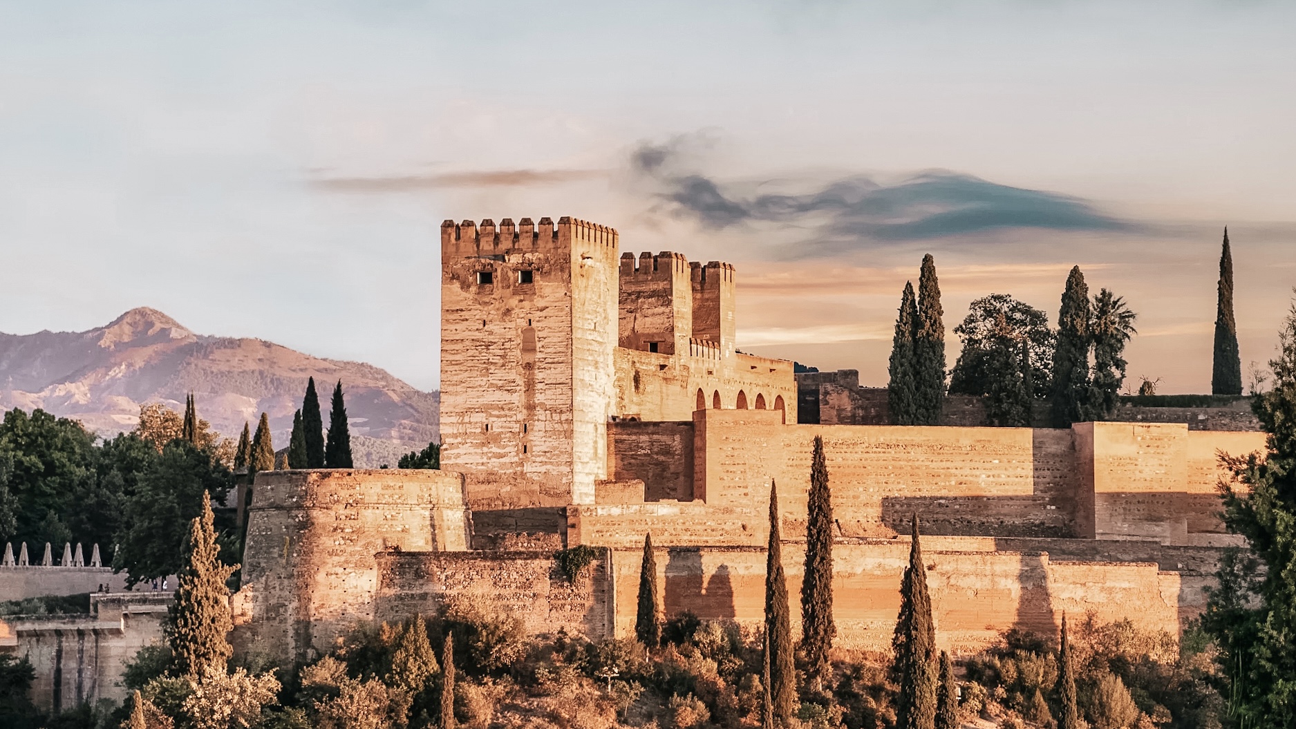 Sunset from the viewpoint of the gardens of the Carmen de los Mártires palace.