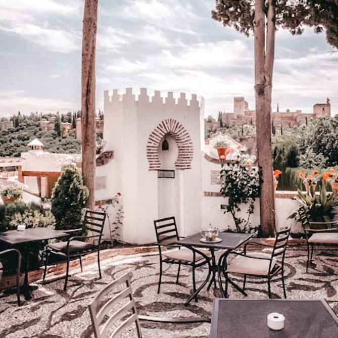 It is one of the most popular tea shops in the Albaycín and although you have to climb a steep hill to get there, the reward is worth it: teas, slushies, crépes, milkshakes… which you can enjoy from a beautiful terrace with views of the Albaycín and the Alhambra.