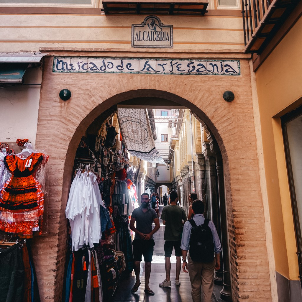 Uno de los sitios con más encanto que más nos gustaron de Granada fue la Alcaicería, una zona llena de tiendecitas de artesanía y productos típicos que antiguamente fue un mercado donde se vendían mercancías valiosas como seda, plata, orfebrería o ropas lujosas que estaba prohibido vender fuera de ese recinto. En el Siglo XIX solo se podía acceder a ella por una de sus nueve puertas que se cerraban por la noche y a día de hoy es un entramado de callecitas preciosas que os transportará a un antiguo zoco o a un mercado árabe.