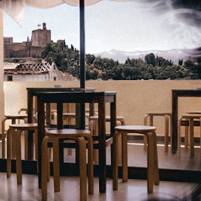 A bar located on the rooftop of the Hotel Palacio Gran Vía with 360º views of both the Cathedral and the Alhambra, perfect for a cocktail at sunset with a good atmosphere, good music and a beautiful decoration: colourful umbrellas, exotic cushions, chill out area with hammocks… don’t miss it!