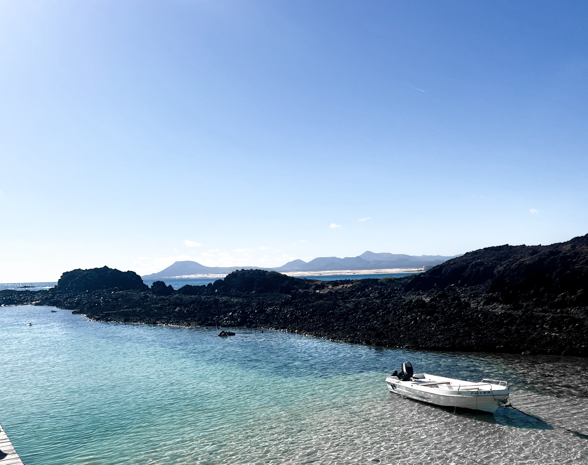 Sin duda alguna, es el lugar más icónico de la isla y su visita es obligada en Lobos… lo que también hace que sea un lugar muy concurrido y menos tranquilo. En esta zona se agrupan algunas casitas de pescadores alrededor de varias piscinas naturales de color turquesa cristalino sobre las que se asoma el carismático y fotogénico muelle de madera donde todo el mundo se fotografía. También es el sitio en el que se ubica el único restaurante de la isla donde se suele parar a fuerzas. Las vistas son simplemente increíbles, y se respira un ambiente auténtico de pueblito marinero en el que puedes charlar animadamente con algún pescador local.