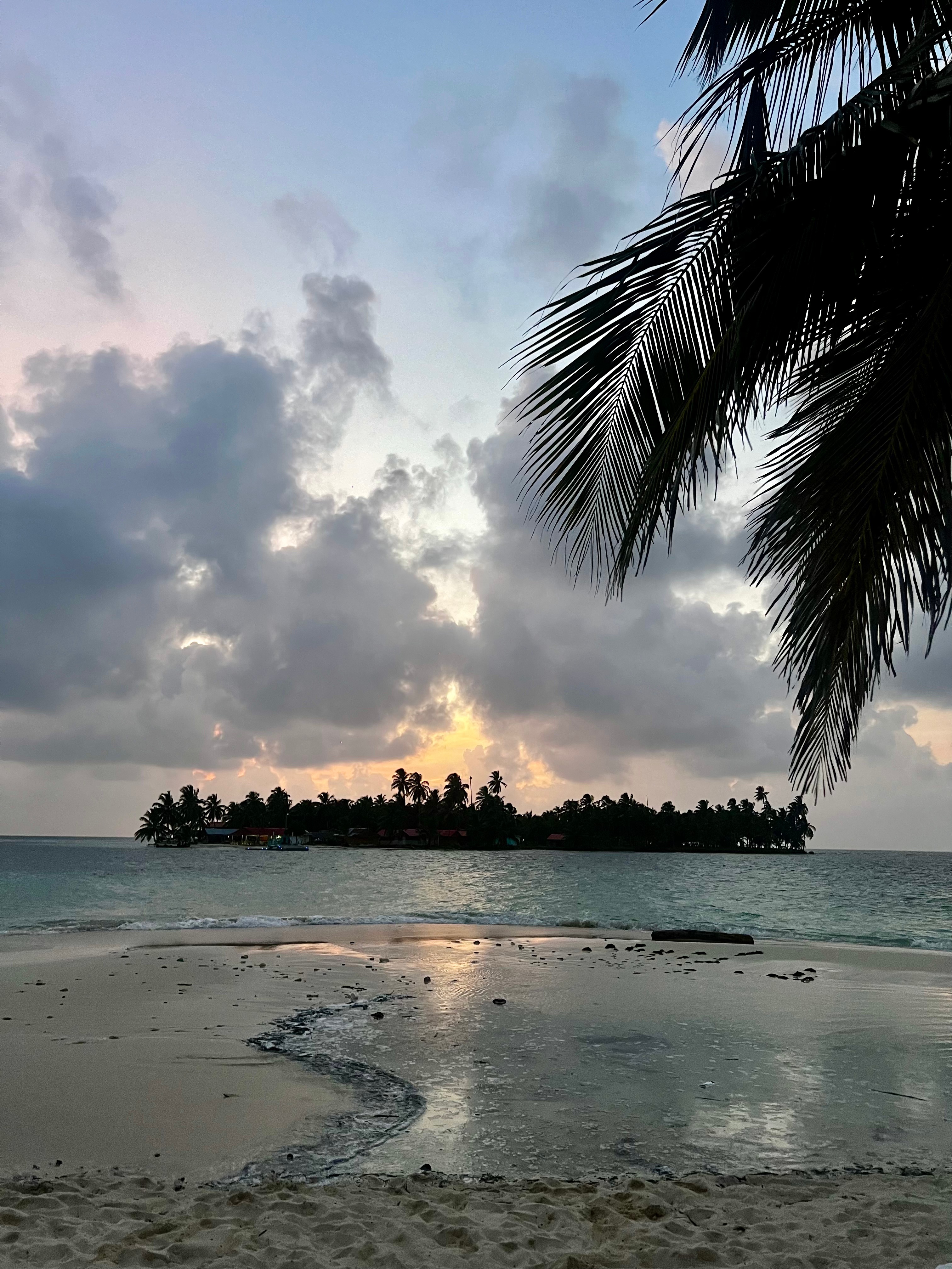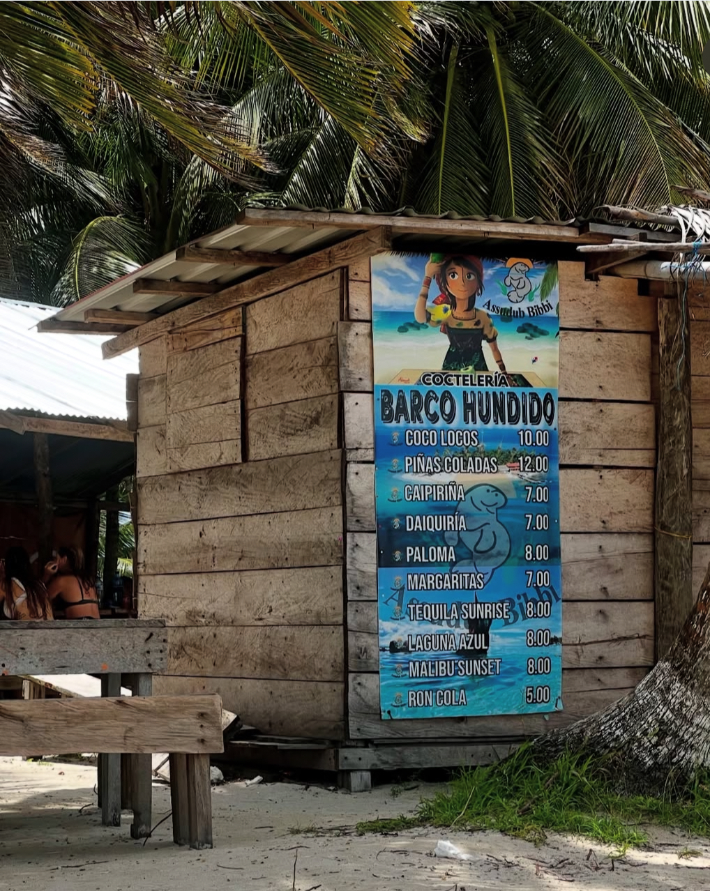 Otra de las cosas que miramos fue el tamaño: la isla era lo suficientemente pequeña como para sentirte perdido en el mundo, pero tenía varias zonas diferenciadas, hamacas colgadas de las palmeras, podías hacer pequeñas caminatas para descubrir sus diferentes playas… además tenía un puestecito de artesanía Guna con molas (paneles coloridos de tela cosidos a mano), objetos tallados en madera, pinturas… y un sencillo bar-coctelería muy pintoresco que resultó perfecto para disfrutar de la puesta de sol con un coctel o cerveza en la mano.