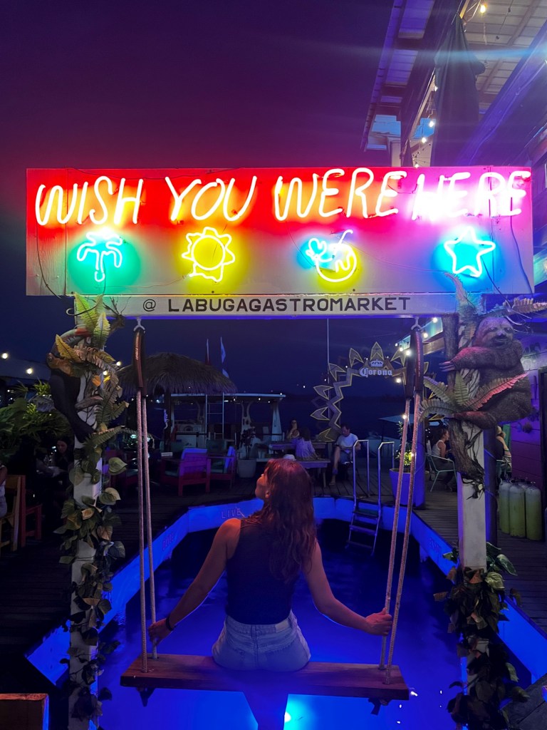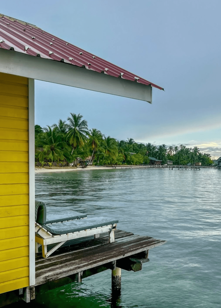 Actually, what drew us to Carenero was the opportunity to spend a couple of nights at the legendary Faro del Colibrí, an iconic accommodation on the island for its yellow cottages overlooking the sea. The hotel only has five cottages, so it was the first thing we booked when we started thinking about our trip to Panama. It has its own beach area, and I can’t describe the sunrises we enjoyed from the terrace. Waking up there made you feel like you were lost on a desert island. In addition, on the small path that runs through Isla Carenero from the accommodation, we found places that we loved: we ate at Bibi´s on the Beach (an iconic spot on the island and very popular with surfers), we had a delicious, freshly baked pizza at the tropical Coquitos Beach, we discovered a small Mexican food and local beer stall called Carnitas, and of course we didn’t forget to stop by Aqua Lounge to take a dip and try their famous cocktails (by the way, we loved the place and it was also a hostel, although we wouldn’t recommend it for sleeping as it’s a party spot). The island is also home to the well-known hotel Cosmic Crab Resort , where you can also have lunch or dinner in its restaurant.