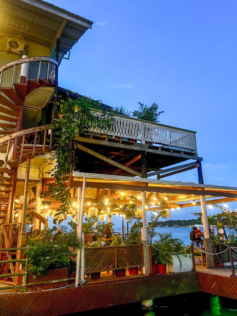 De Bocas Town a The Floating Boat: una de las salidas que hicimos por mar fue hasta The Floating Boat, un bar muy popular justo en medio del agua. El trayecto era de 30 mins. y llegamos con un taxi boat local (2$)