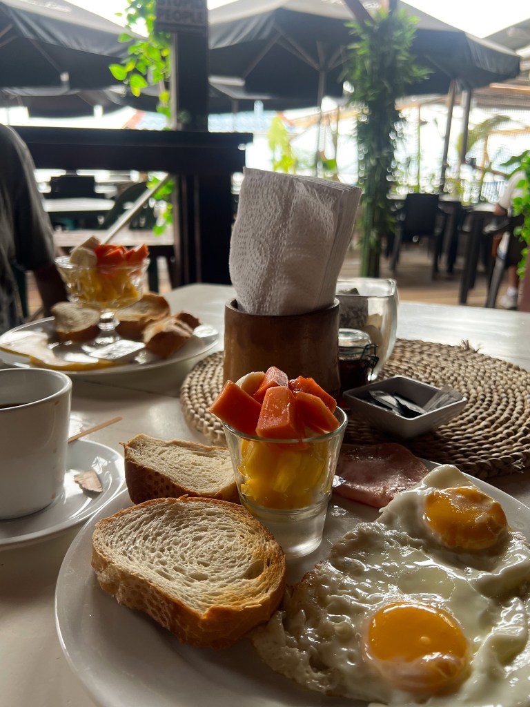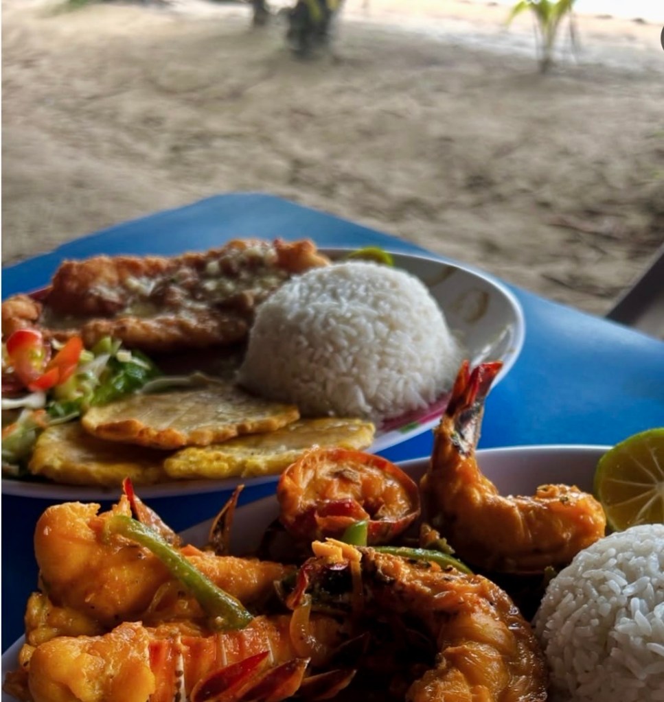If you want to enjoy the Playa Estrella experience to the fullest, I highly recommend booking one or two nights in the Boca del Drago area so you can go to the beach whenever you feel like it and take advantage of it, especially at times when there are hardly any tourists (early in the morning or at sunset). We stayed at Hospedaje Yarisnori, located right next to where the path to the beach begins. It is simple but very authentic accommodation, surrounded by nature and with a beautiful beach in front of it where there were several sun loungers and from which you could enjoy spectacular sunsets. In the surrounding area, there is only a small bar-restaurant serving local food (where, incidentally, we had breakfast on our last day and chatted with its charming owner; it was called ‘Donde la Teacher Restaurant’) and a couple of other places to stay, making it the perfect place to unwind. The road from Yarisnori to Playa Estrella is wild and leaves you speechless, with a picture-postcard bay full of palm trees on the seashore (I almost liked it as much or more than the beach itself). Once in Playa Estrella, you will find quite a few beach bars and local food houses. We ate at Ana Restaurant and loved it!